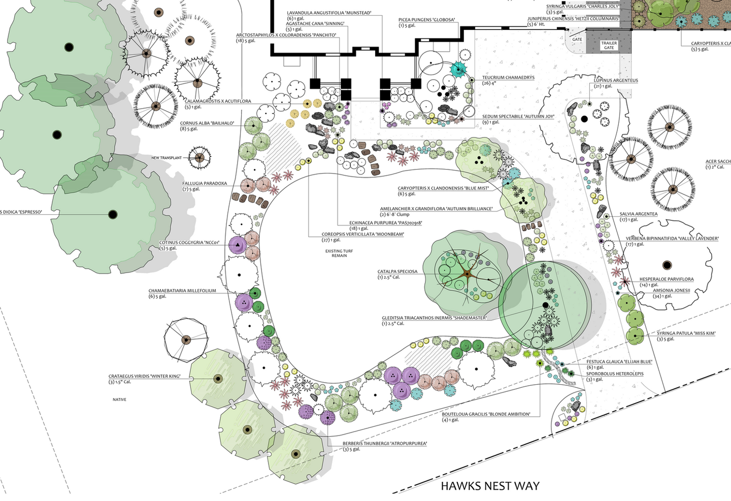 At this residence I transformed a small fenced backyard to a sprawling play area for both kids, dog, and adults. We took advantage of an existing berm to incorporate a slide and zip line. For the adults, a fire pit was added. And of course lots of grass (both irrigated and non-irrigated) for the dog to run!